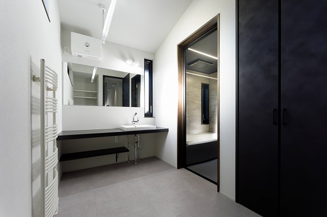 ランドリー兼ねた広々洗面脱衣室。カライエ設置は嬉しいです